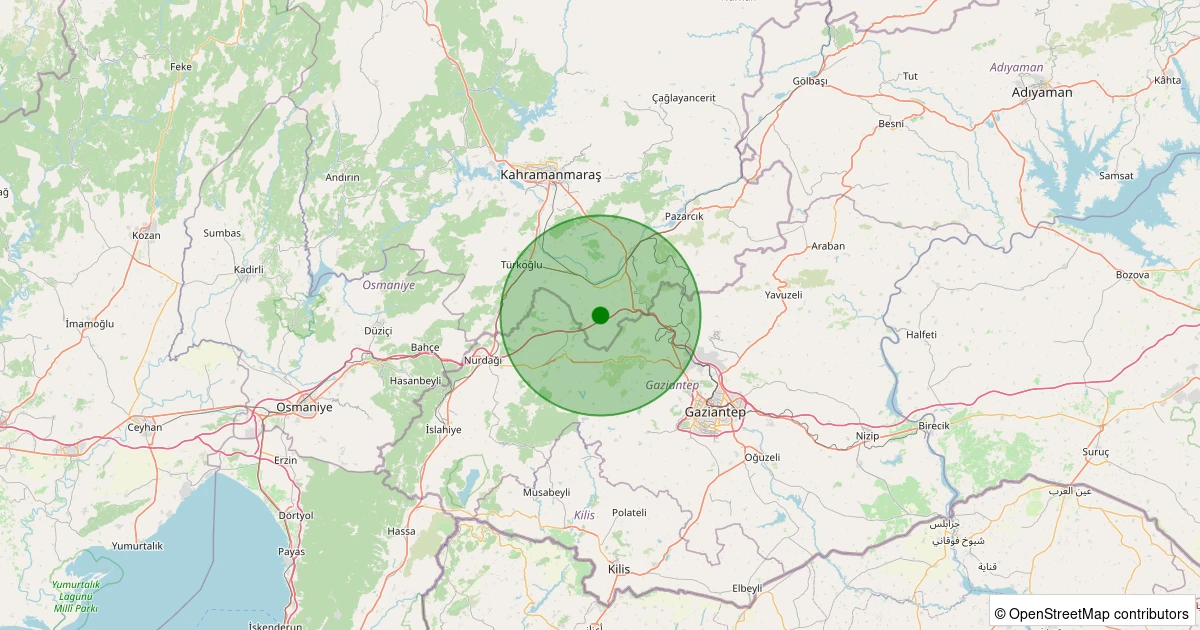 Son 7 gün içinde Pazarcık - Evri noktasından 100 km yarıçap içerisinde meydana gelen diğer depremler: