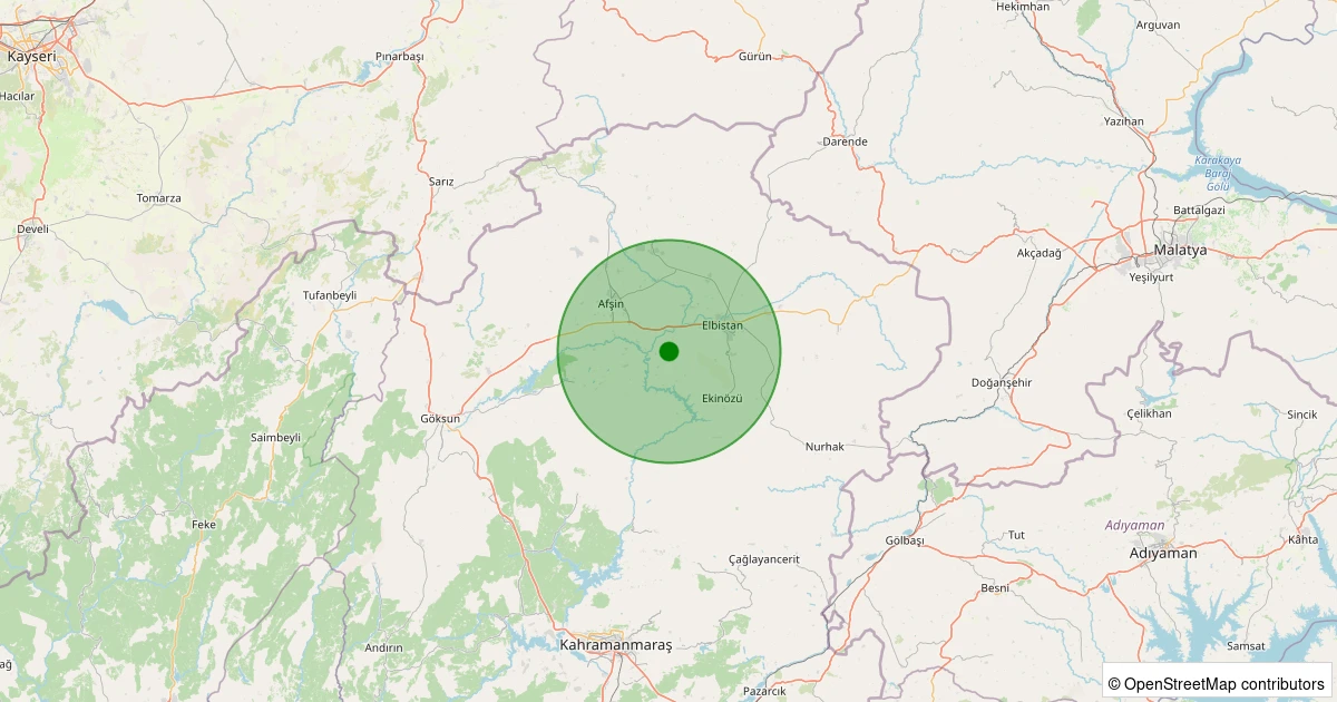 Son 7 gün içinde Göksun - Karadut noktasından 100 km yarıçap içerisinde meydana gelen diğer depremler: