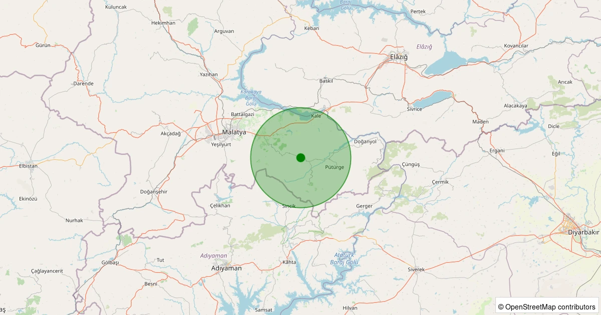 Son 7 gün içinde Pütürge - Kökpınar Köyü noktasından 100 km yarıçap içerisinde meydana gelen diğer depremler: