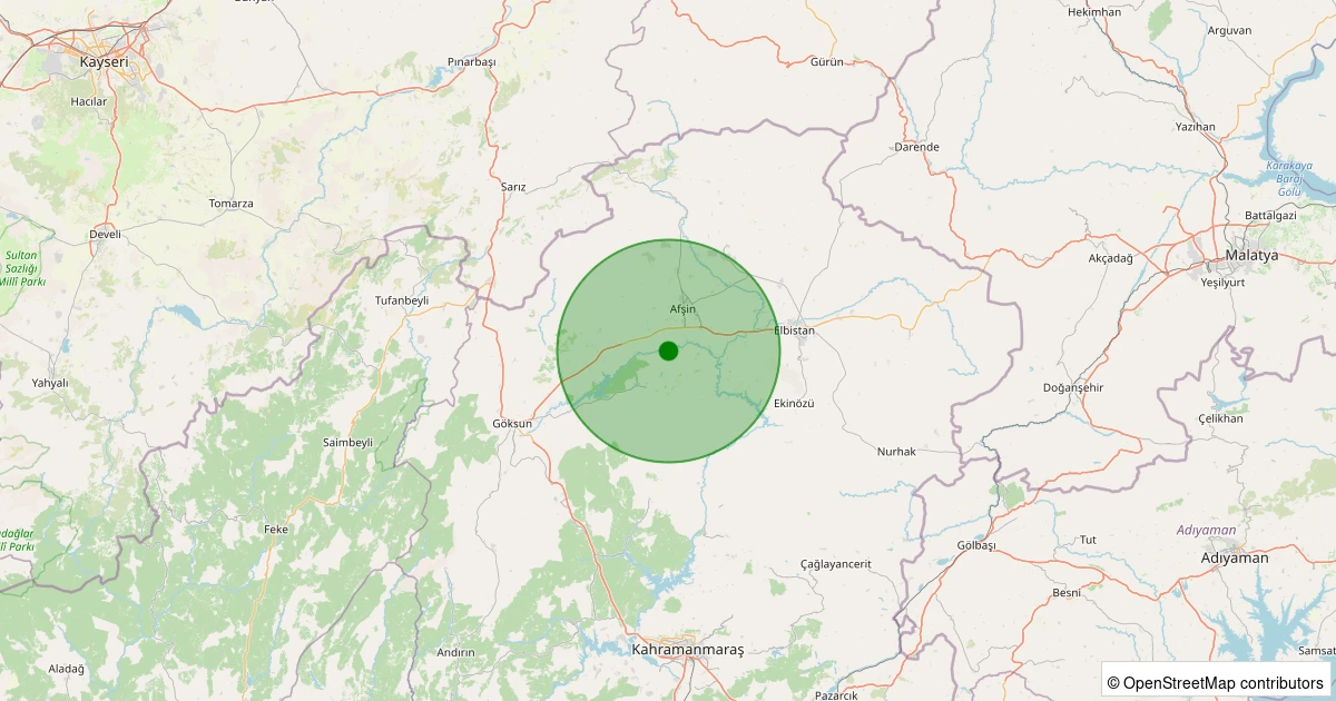 Son 7 gün içinde Afşin - Anzorey noktasından 100 km yarıçap içerisinde meydana gelen diğer depremler: