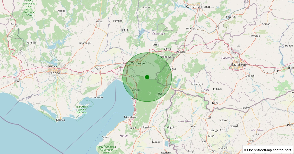 Son bir hafta içerisinde Osmaniye şehri Merkez - Dereobası Köyü noktasından 100 km yarıçap içerisinde toplamda 61 deprem kaydedilmiştir. Bu depremlerden en büyüğü 2.4 büyüklüğünde ve en sığ odaklısı 0.00 kilometre derinlikte gerçekleşmiştir.