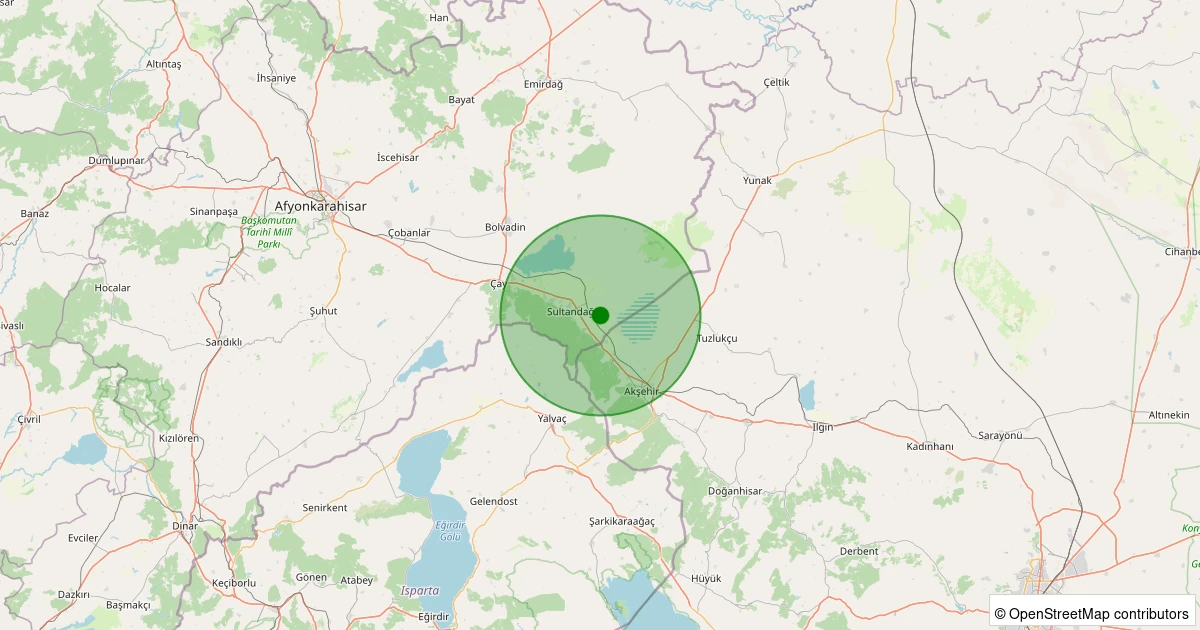 Son 7 gün içinde Sultandağı noktasından 100 km yarıçap içerisinde meydana gelen diğer depremler: