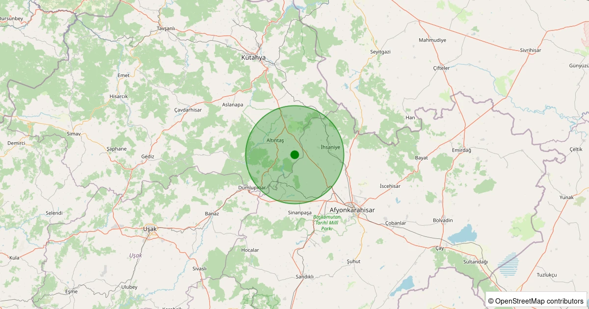 Son 7 gün içinde Altıntaş - Beşkarış Köyü noktasından 100 km yarıçap içerisinde meydana gelen diğer depremler: