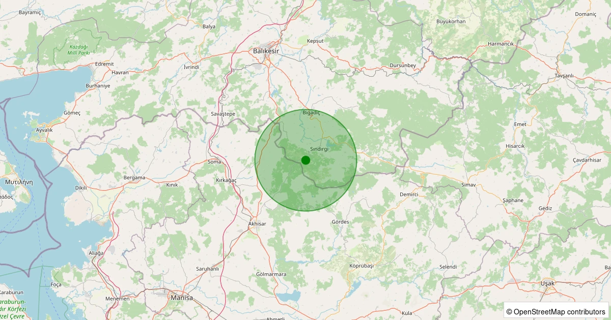Son 7 gün içinde Sındırgı - Kertil noktasından 100 km yarıçap içerisinde meydana gelen diğer depremler: