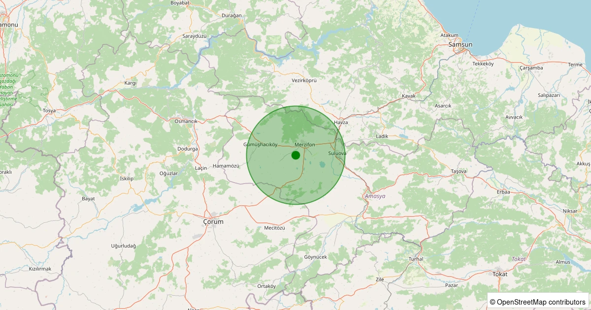 Son 7 gün içinde Merzifon - Yakup Köyü noktasından 100 km yarıçap içerisinde meydana gelen diğer depremler: