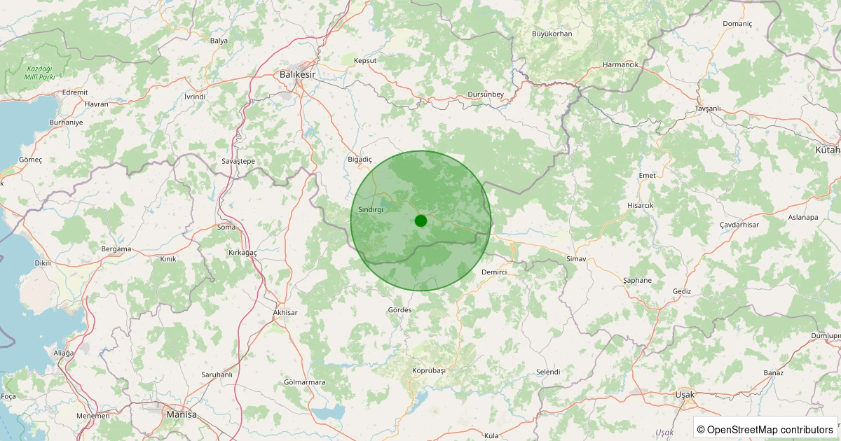 Son 7 gün içinde Sındırgı - Çıkrıkçı noktasından 100 km yarıçap içerisinde meydana gelen diğer depremler: