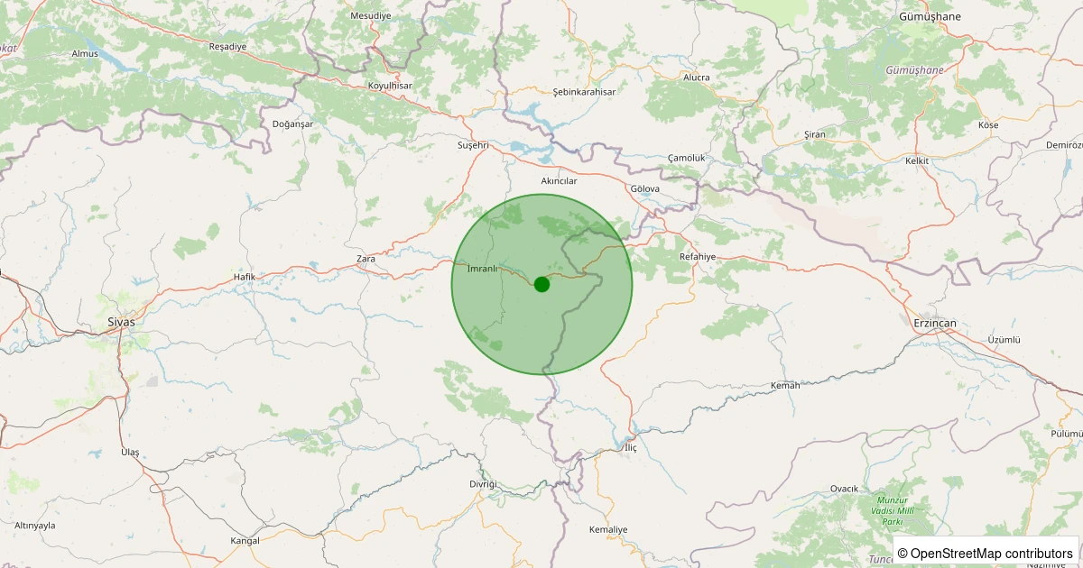 Son 7 gün içinde İmranlı - Koyunkaya Köyü noktasından 100 km yarıçap içerisinde meydana gelen diğer depremler: