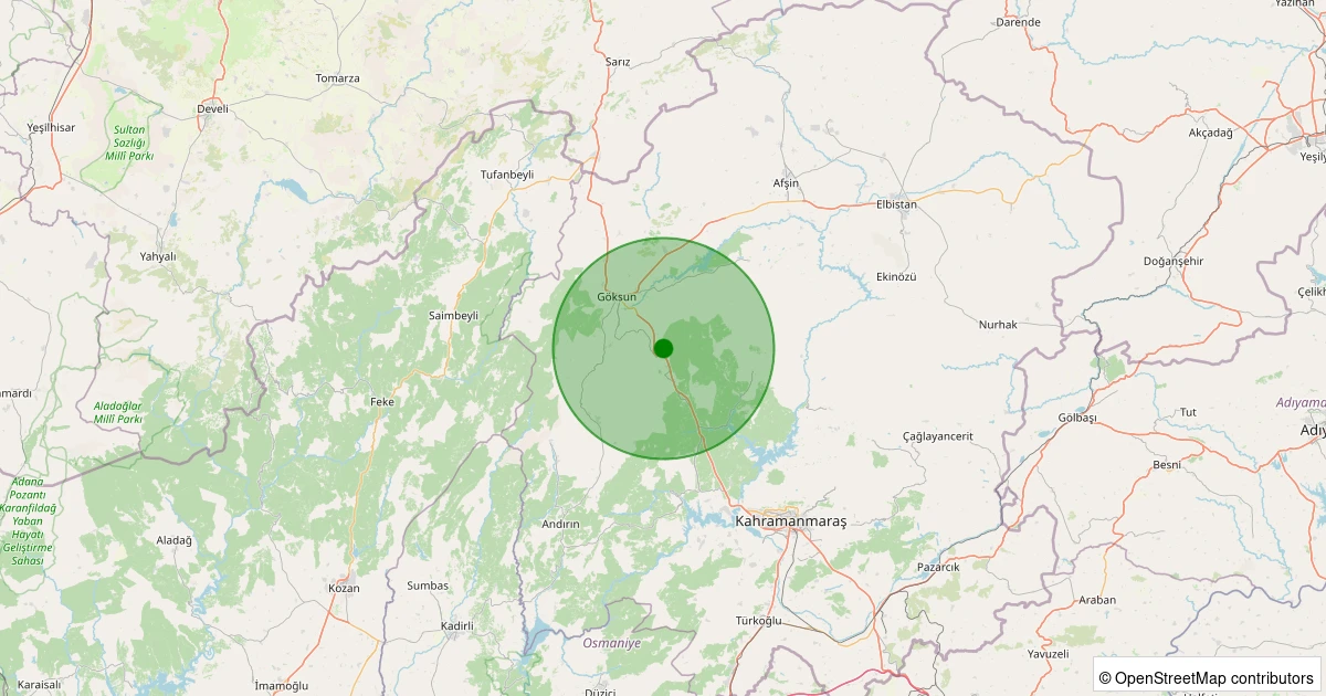 Son 7 gün içinde Onikişubat - Tekir noktasından 100 km yarıçap içerisinde meydana gelen diğer depremler: