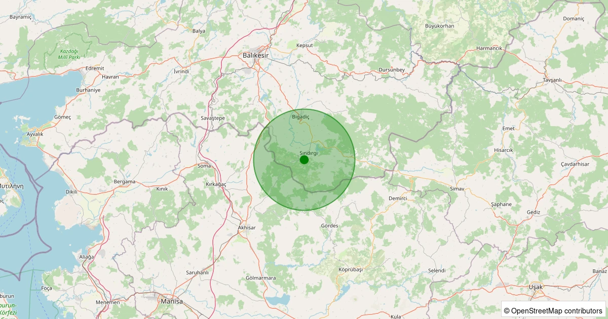 Son 7 gün içinde Sındırgı noktasından 100 km yarıçap içerisinde meydana gelen diğer depremler: