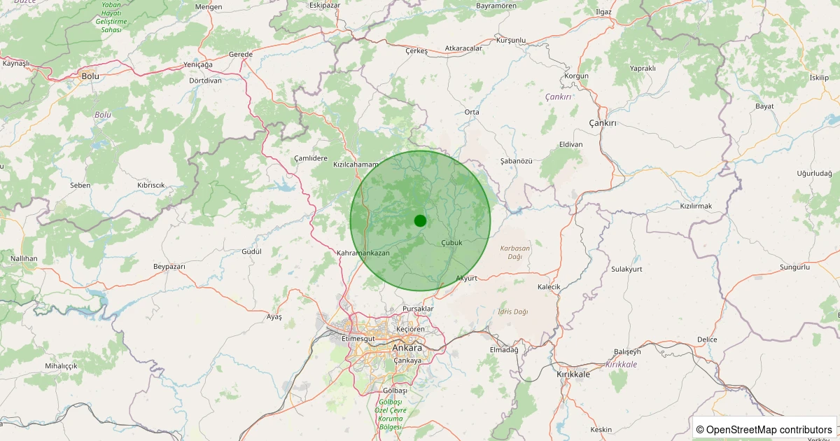 Son 7 gün içinde Çubuk - Özlüce noktasından 100 km yarıçap içerisinde meydana gelen diğer depremler: