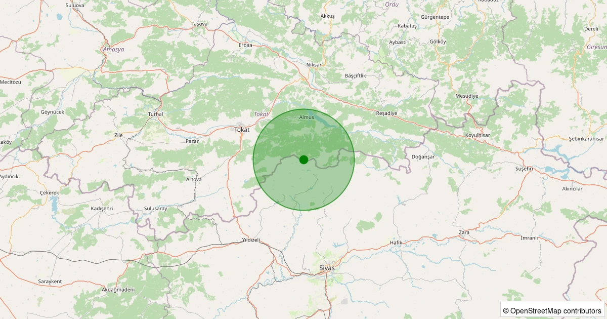 Son 7 gün içinde Almus - Çevreli noktasından 100 km yarıçap içerisinde meydana gelen diğer depremler: