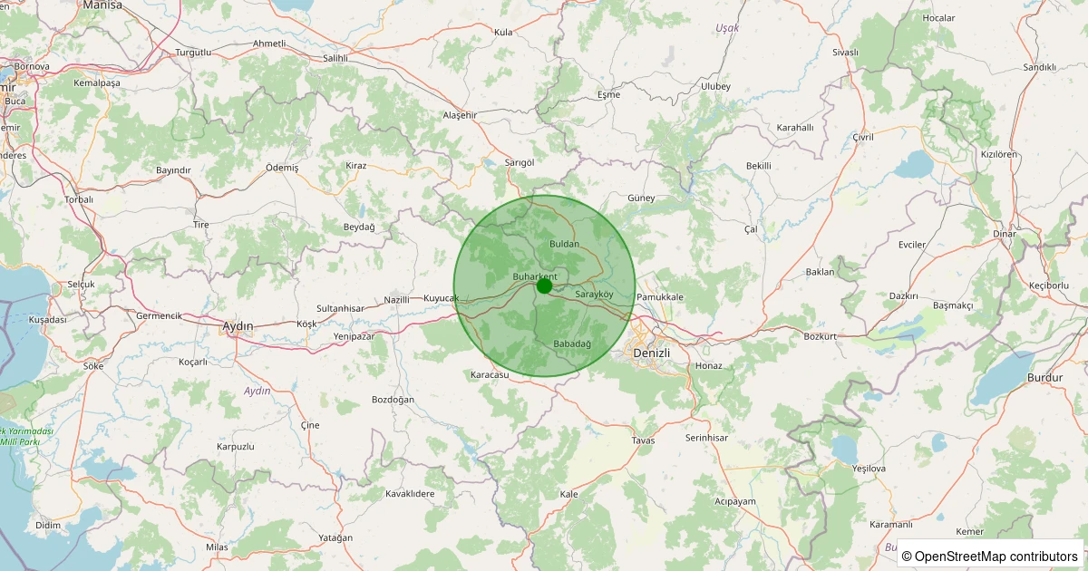 Son 7 gün içinde Sarayköy - Kabaağaç Köyü noktasından 100 km yarıçap içerisinde meydana gelen diğer depremler: