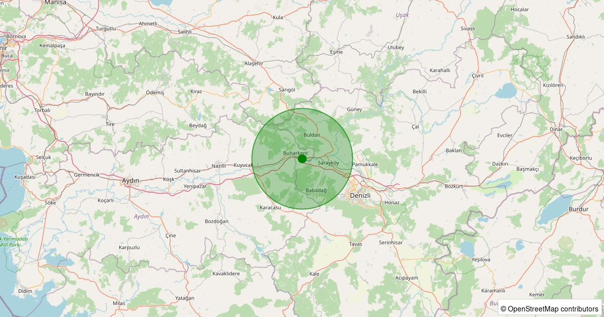 Son 7 gün içinde Sarayköy - Kabaağaç Köyü noktasından 100 km yarıçap içerisinde meydana gelen diğer depremler: