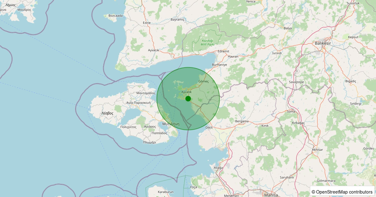 Son 7 gün içinde Ayvalık - Küçükköy noktasından 100 km yarıçap içerisinde meydana gelen diğer depremler: