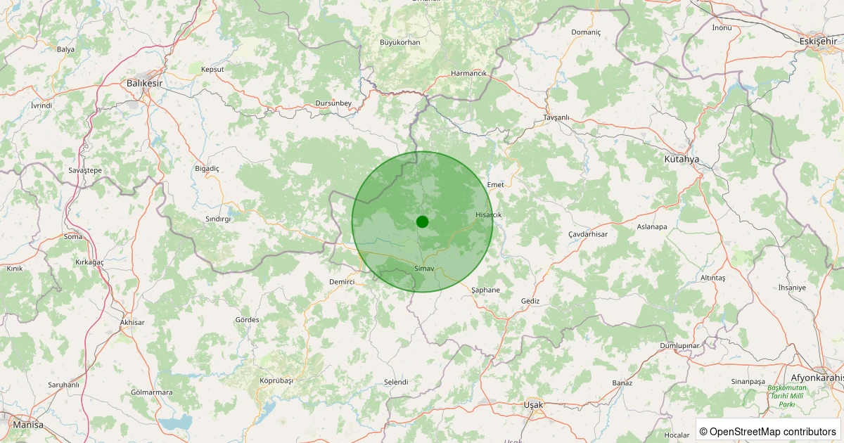 Son 7 gün içinde Simav - Yemişli Köyü noktasından 100 km yarıçap içerisinde meydana gelen diğer depremler: