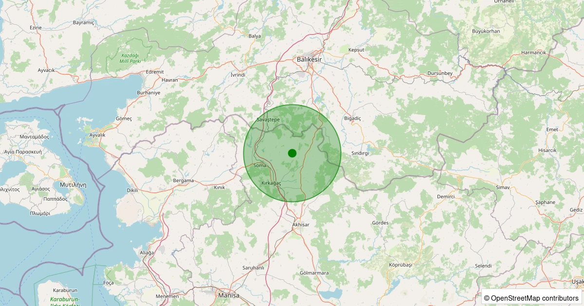 Son 7 gün içinde Soma - Karacakaş noktasından 100 km yarıçap içerisinde meydana gelen diğer depremler: