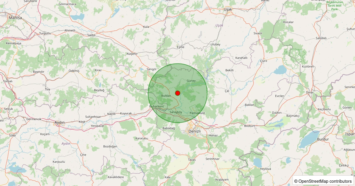 Son 7 gün içinde Buldan - Yenicekent noktasından 100 km yarıçap içerisinde meydana gelen diğer depremler: