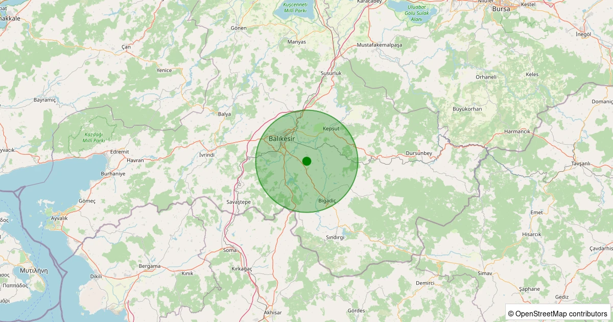 Son 7 gün içinde Altıeylül - Aslıhantepecik noktasından 100 km yarıçap içerisinde meydana gelen diğer depremler: