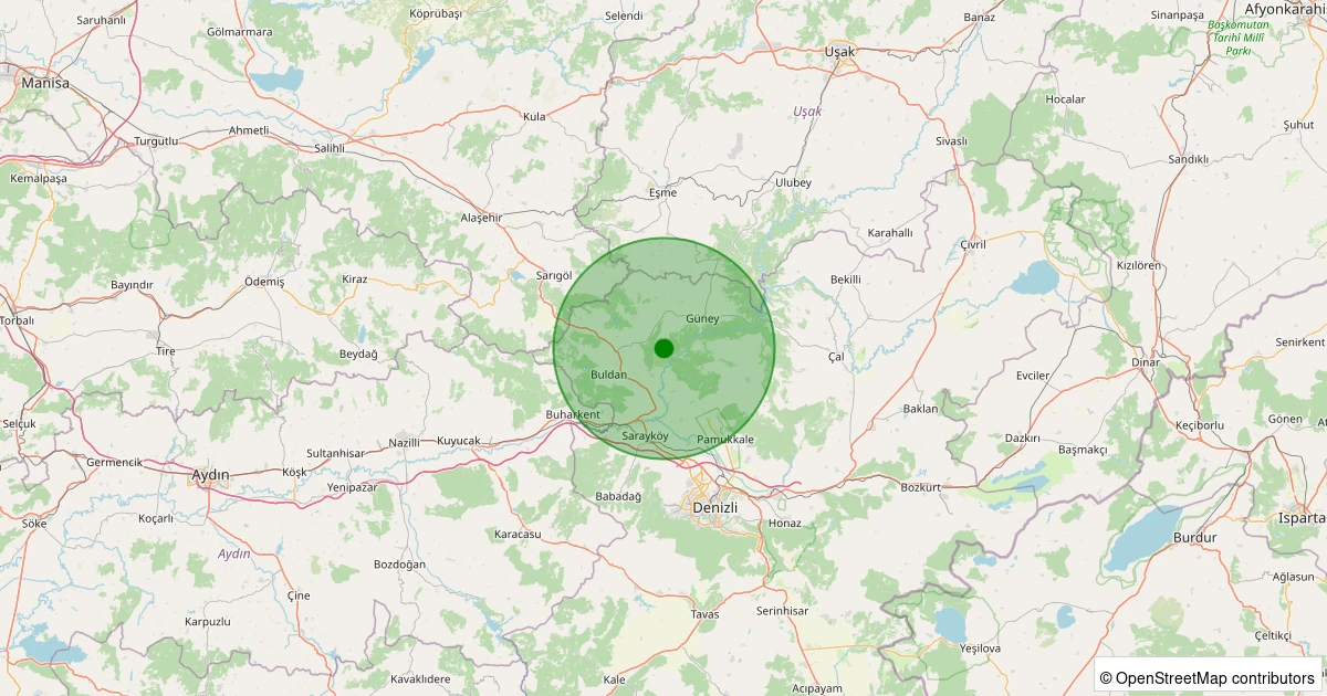 Son 7 gün içinde Buldan - Yenicekent noktasından 100 km yarıçap içerisinde meydana gelen diğer depremler: