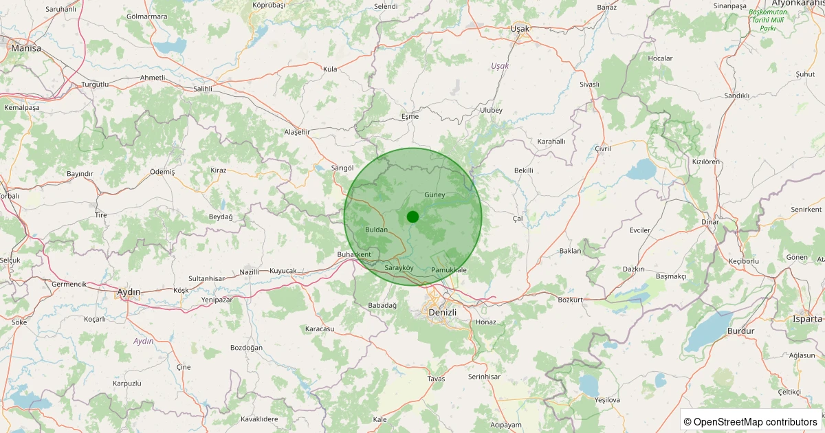 Son 7 gün içinde Buldan - Yenicekent noktasından 100 km yarıçap içerisinde meydana gelen diğer depremler: