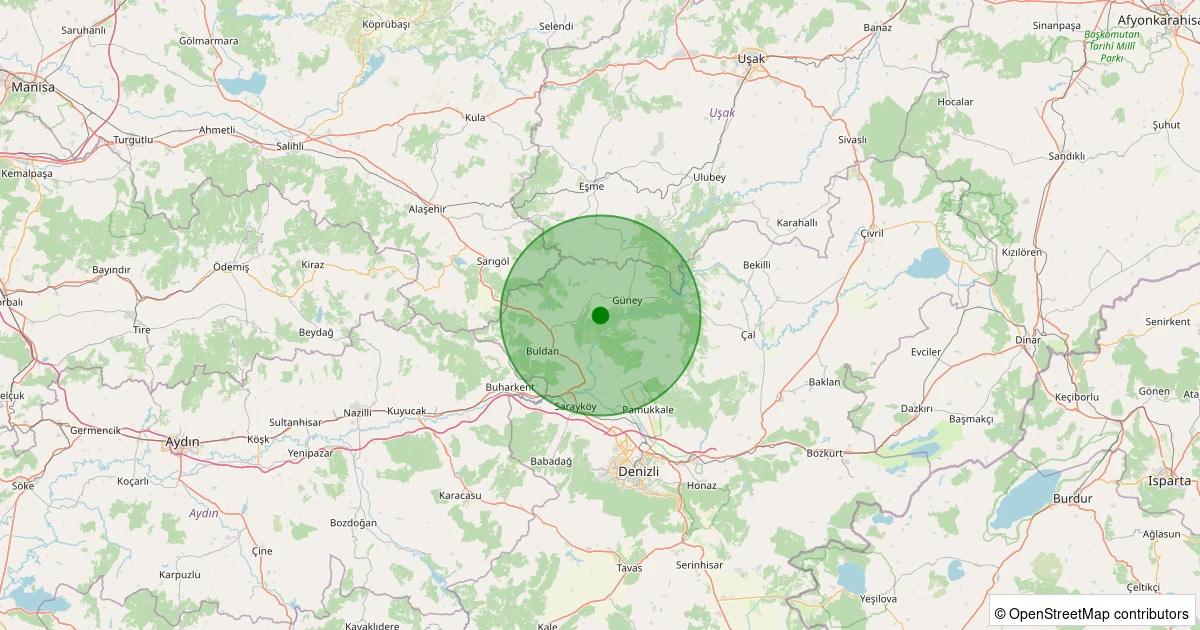 Son bir hafta içerisinde Denizli şehri Güney - Karaağaçlı noktasından 100 km yarıçap içerisinde toplamda 198 deprem kaydedilmiştir. Bu depremlerden en büyüğü 3.9 büyüklüğünde ve en sığ odaklısı 0.00 kilometre derinlikte gerçekleşmiştir.