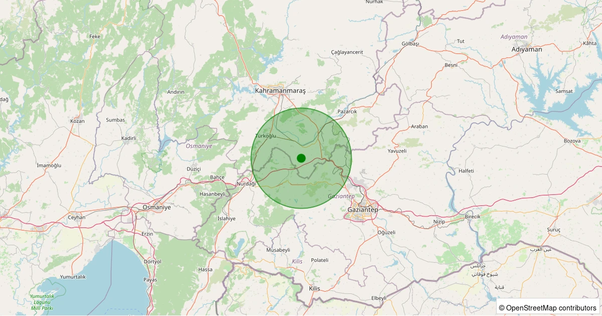Son 7 gün içinde Pazarcık - Akdemir noktasından 100 km yarıçap içerisinde meydana gelen diğer depremler: