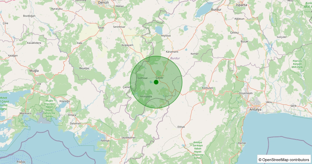 Son 7 gün içinde Çavdır noktasından 100 km yarıçap içerisinde meydana gelen diğer depremler: