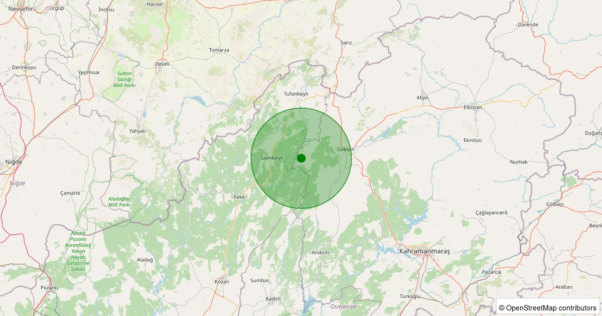 Son 7 gün içinde Göksun - Kaleboynu noktasından 100 km yarıçap içerisinde meydana gelen diğer depremler: