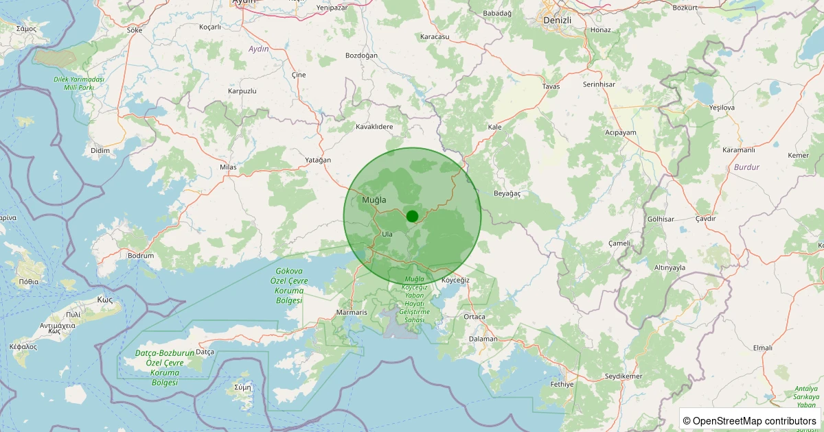 Son 7 gün içinde Menteşe - Yaraş noktasından 100 km yarıçap içerisinde meydana gelen diğer depremler: