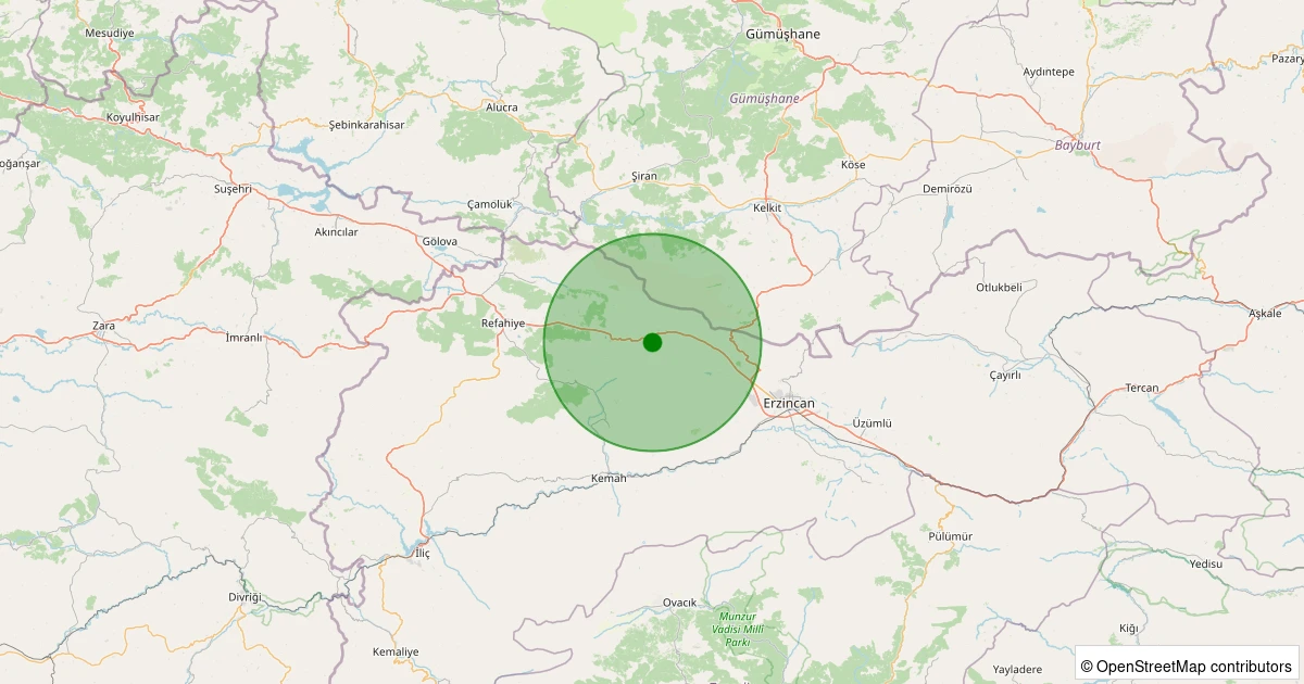 Son 7 gün içinde Kemah - Akbudak Köyü noktasından 100 km yarıçap içerisinde meydana gelen diğer depremler: