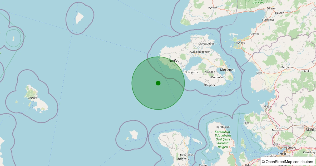 Son 7 gün içinde MIDILLI noktasından 100 km yarıçap içerisinde meydana gelen diğer depremler: