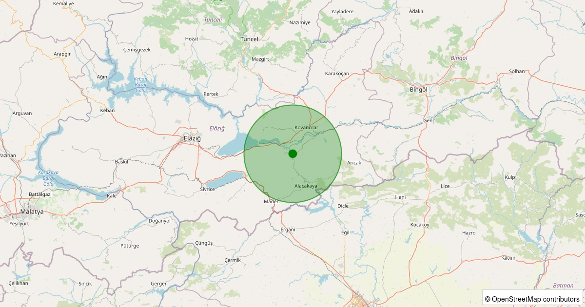 Son 7 gün içinde Palu - Baltaşı Köyü noktasından 100 km yarıçap içerisinde meydana gelen diğer depremler: