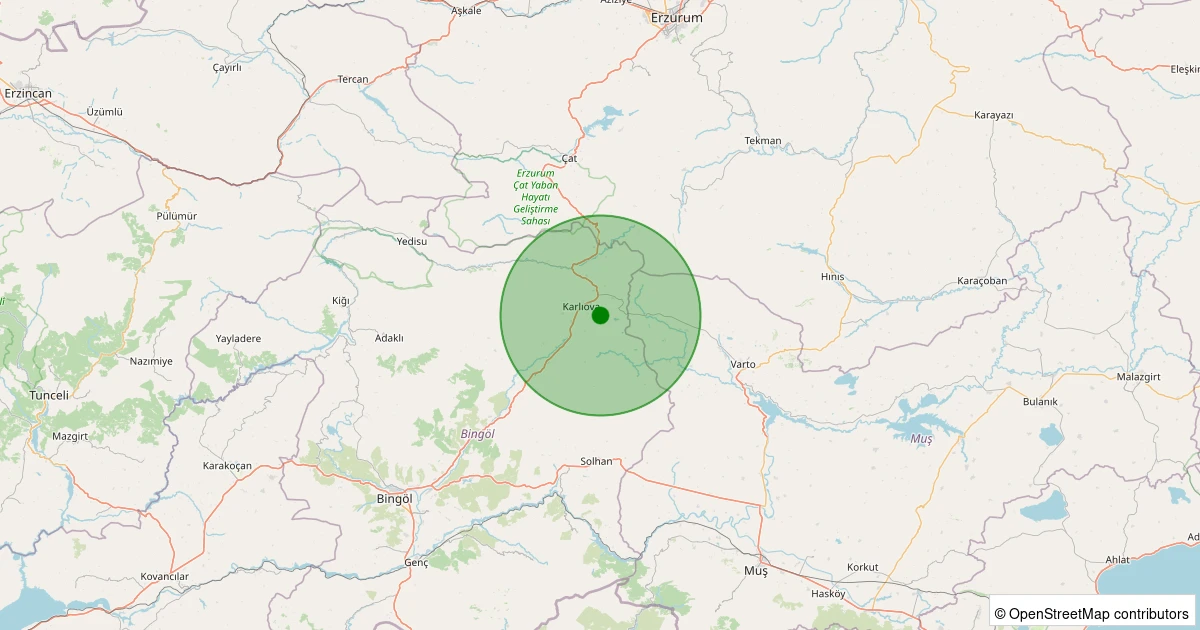 Son 7 gün içinde Karlıova - Sakaören Köyü noktasından 100 km yarıçap içerisinde meydana gelen diğer depremler: