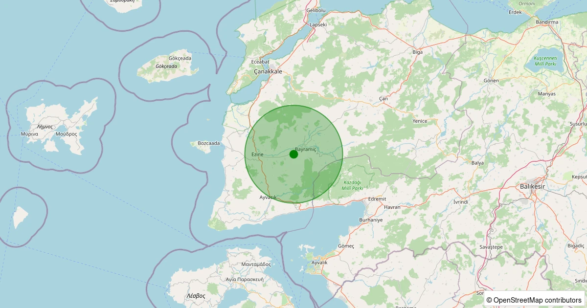 Son 7 gün içinde Bayramiç - Pınarbaşı Köyü noktasından 100 km yarıçap içerisinde meydana gelen diğer depremler: