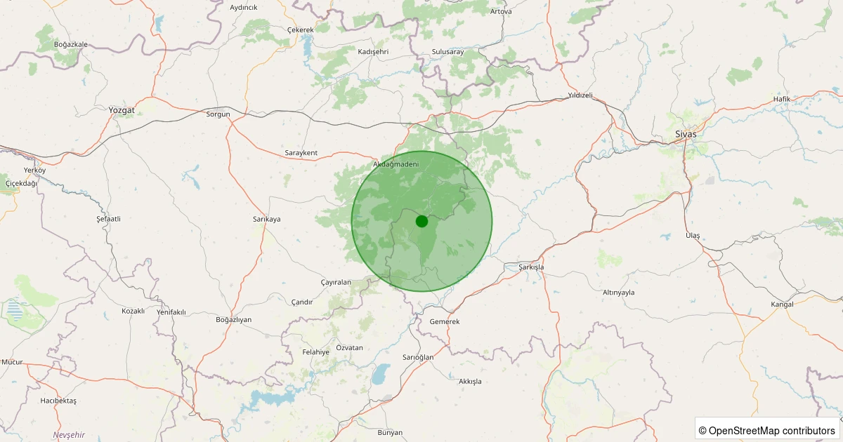 Son 7 gün içinde Gemerek - Çat Köyü noktasından 100 km yarıçap içerisinde meydana gelen diğer depremler: