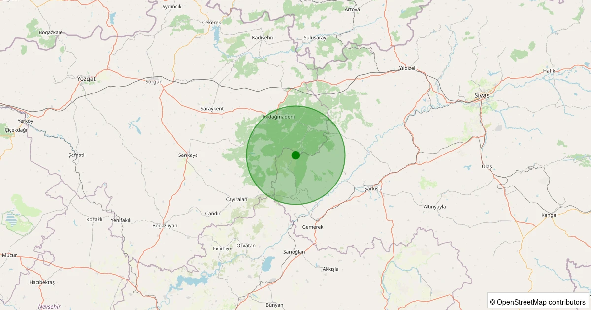 Son 7 gün içinde Gemerek - Çat Köyü noktasından 100 km yarıçap içerisinde meydana gelen diğer depremler: