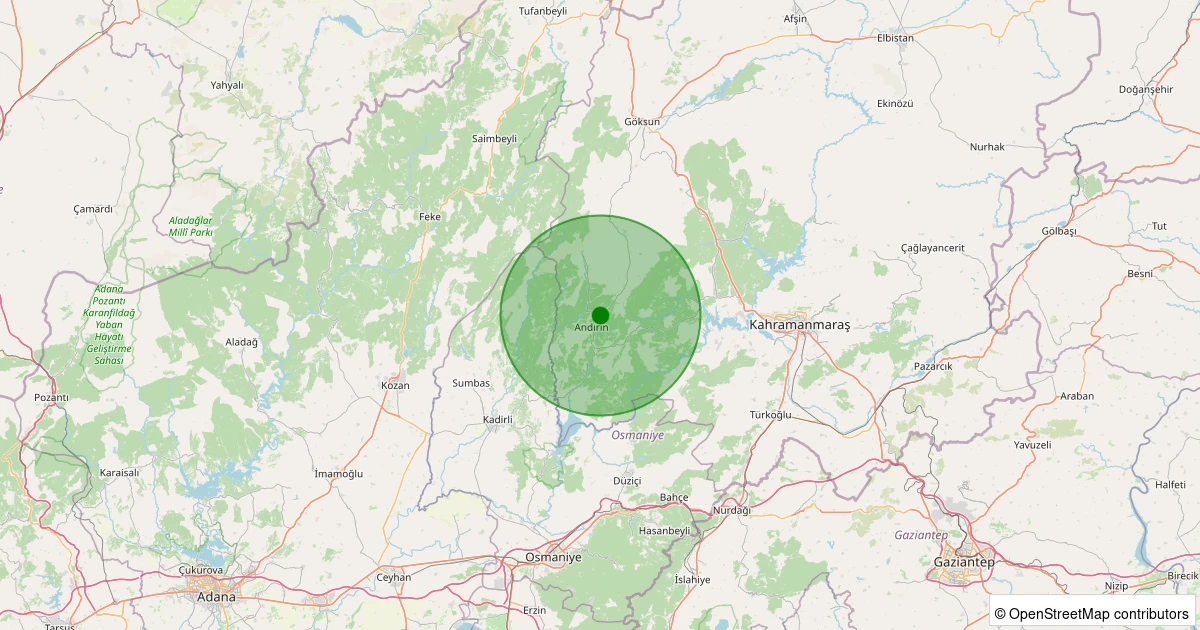 Son 7 gün içinde Andırın - Tufanpaşa noktasından 100 km yarıçap içerisinde meydana gelen diğer depremler: