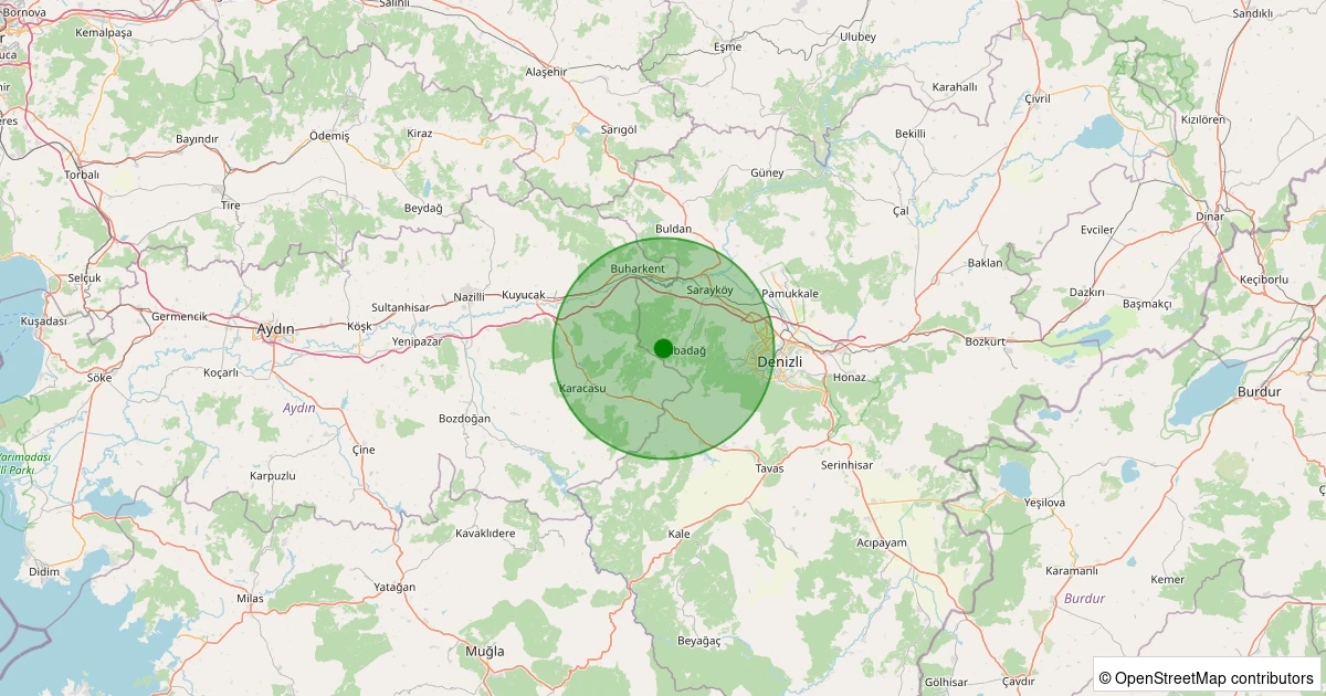 Son 7 gün içinde Babadağ - Kıranyer noktasından 100 km yarıçap içerisinde meydana gelen diğer depremler: