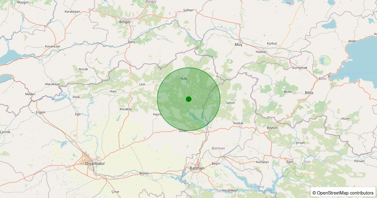 Son 7 gün içinde Kulp - İnkaya Köyü noktasından 100 km yarıçap içerisinde meydana gelen diğer depremler: