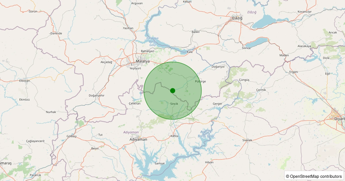 Son 7 gün içinde Pütürge - Arıtoprak Köyü noktasından 100 km yarıçap içerisinde meydana gelen diğer depremler: