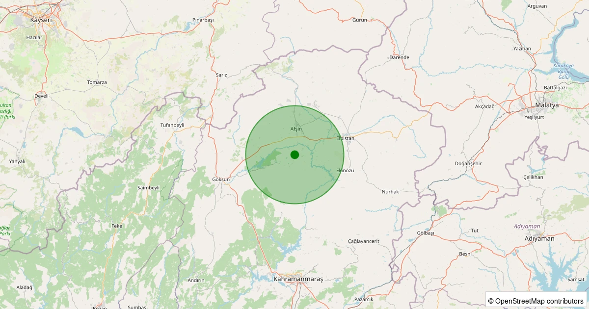 Son 7 gün içinde Göksun - Kamışcık noktasından 100 km yarıçap içerisinde meydana gelen diğer depremler:
