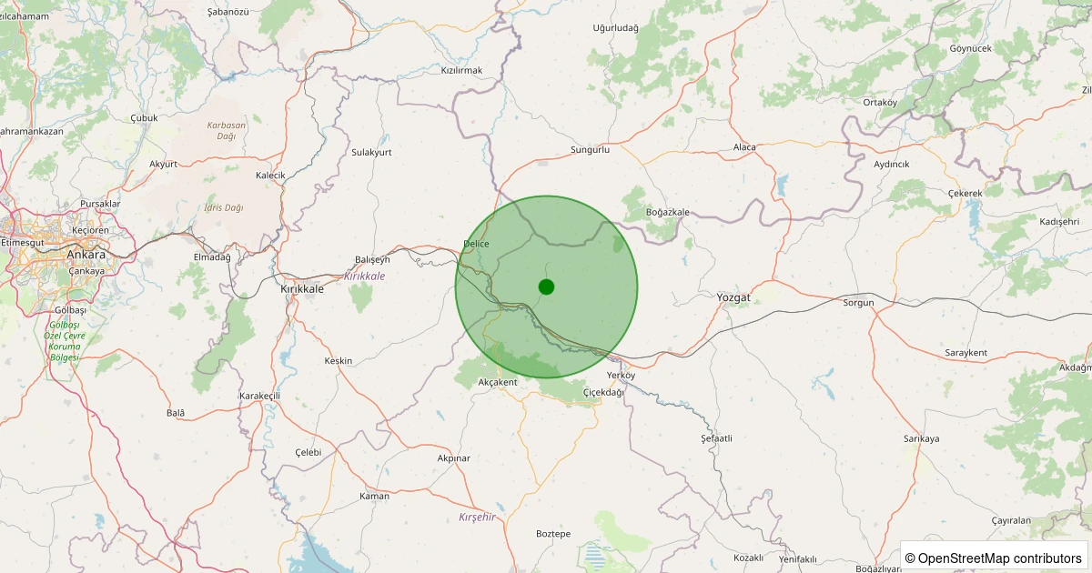 Son 7 gün içinde Yerköy - Arslanhacılı Köyü noktasından 100 km yarıçap içerisinde meydana gelen diğer depremler: