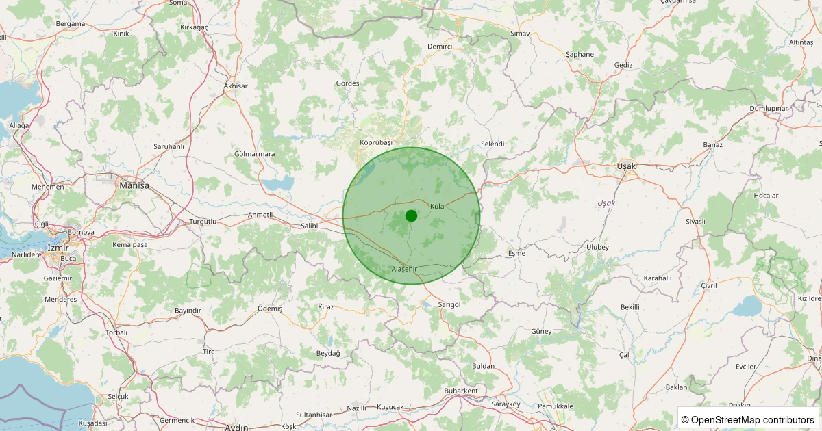 Son 7 gün içinde Kula - Esenyazı noktasından 100 km yarıçap içerisinde meydana gelen diğer depremler: