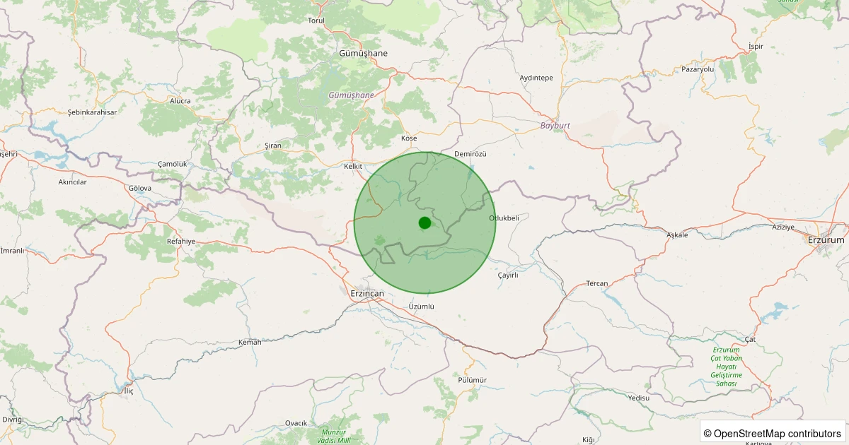 Son 7 gün içinde Kelkit - Çamur Köyü noktasından 100 km yarıçap içerisinde meydana gelen diğer depremler: