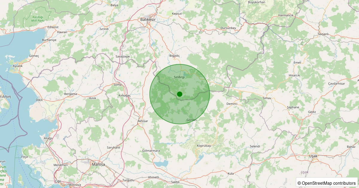 Son 7 gün içinde Sındırgı - Kınık noktasından 100 km yarıçap içerisinde meydana gelen diğer depremler: