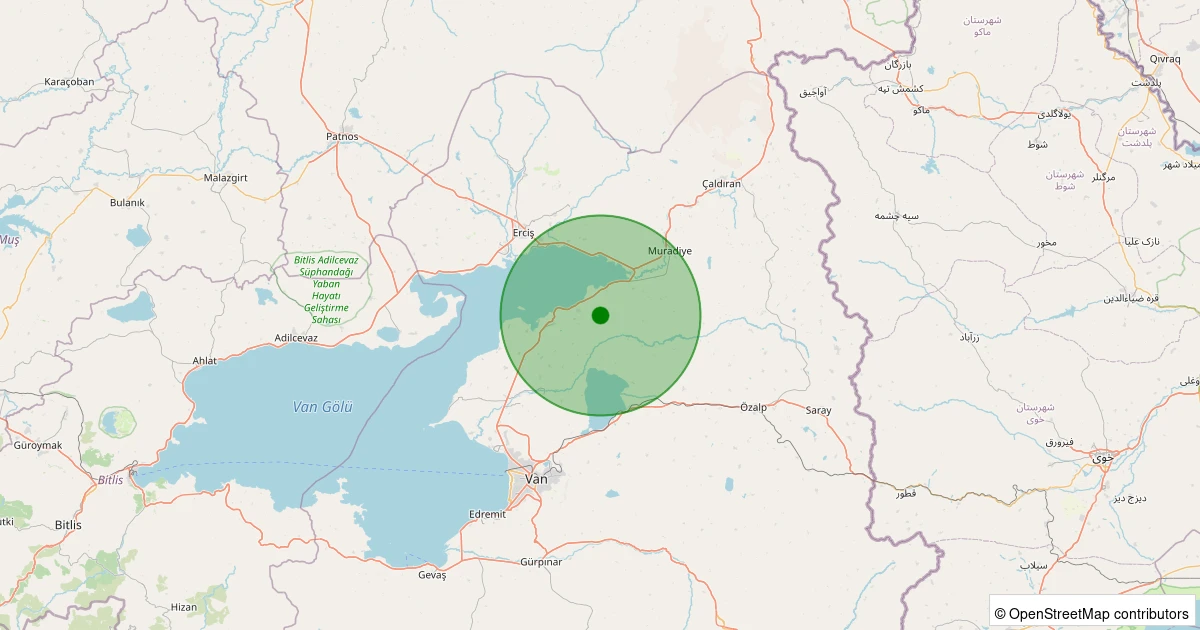 Son 7 gün içinde Tuşba - Çolpan noktasından 100 km yarıçap içerisinde meydana gelen diğer depremler: