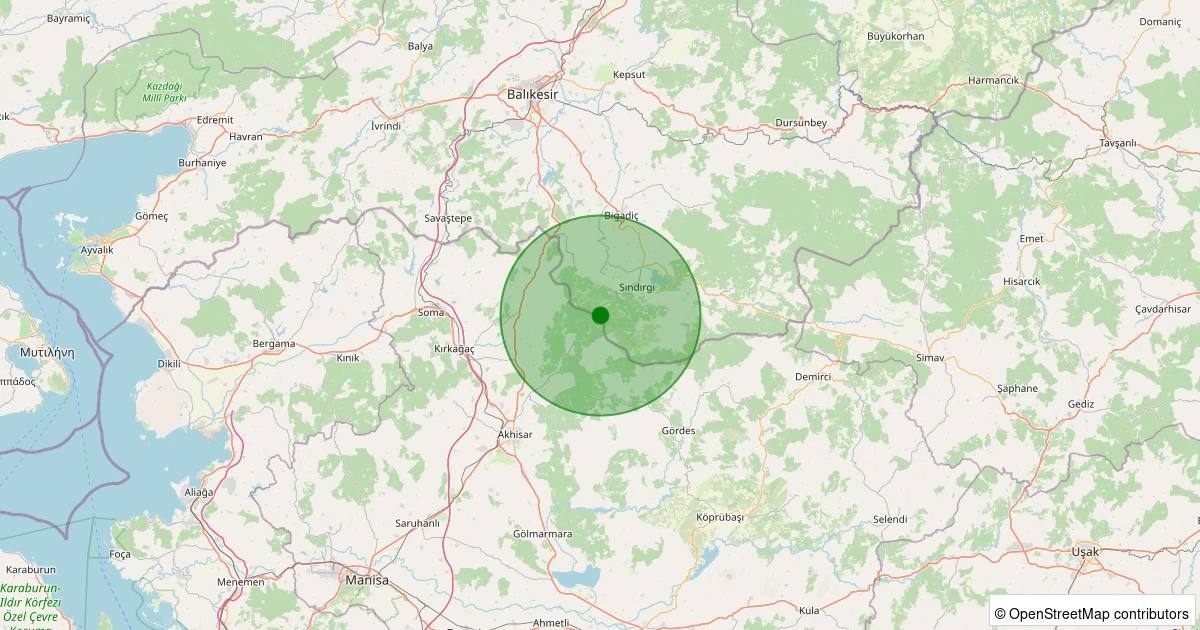 Son 7 gün içinde Sındırgı - Kertil noktasından 100 km yarıçap içerisinde meydana gelen diğer depremler: