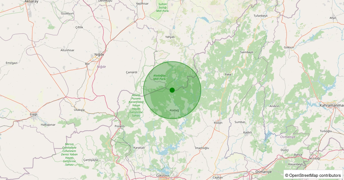 Son 7 gün içinde Yahyalı - Büyük Çakır noktasından 100 km yarıçap içerisinde meydana gelen diğer depremler: