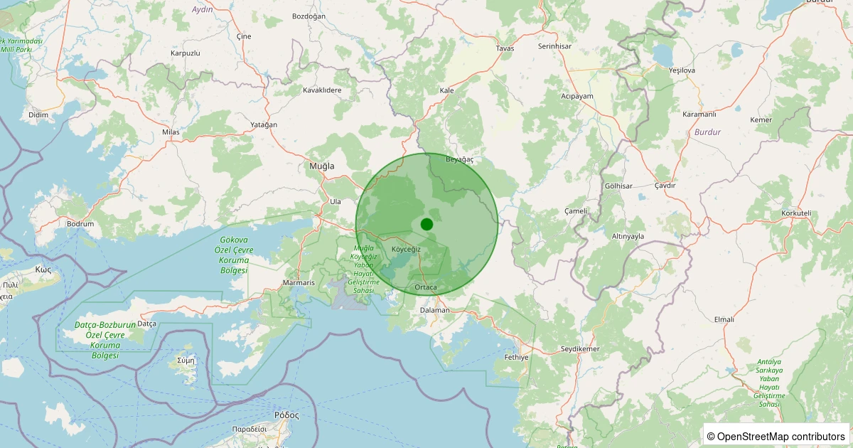 Son 7 gün içinde Köyceğiz - Yayla noktasından 100 km yarıçap içerisinde meydana gelen diğer depremler: