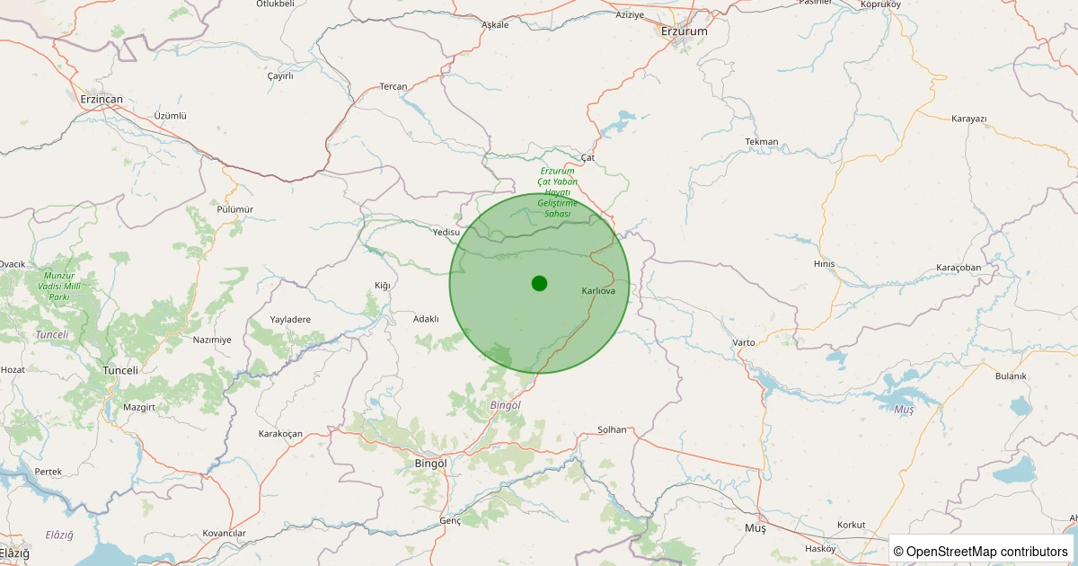 Son 7 gün içinde Karlıova - Yiğitler Köyü noktasından 100 km yarıçap içerisinde meydana gelen diğer depremler: